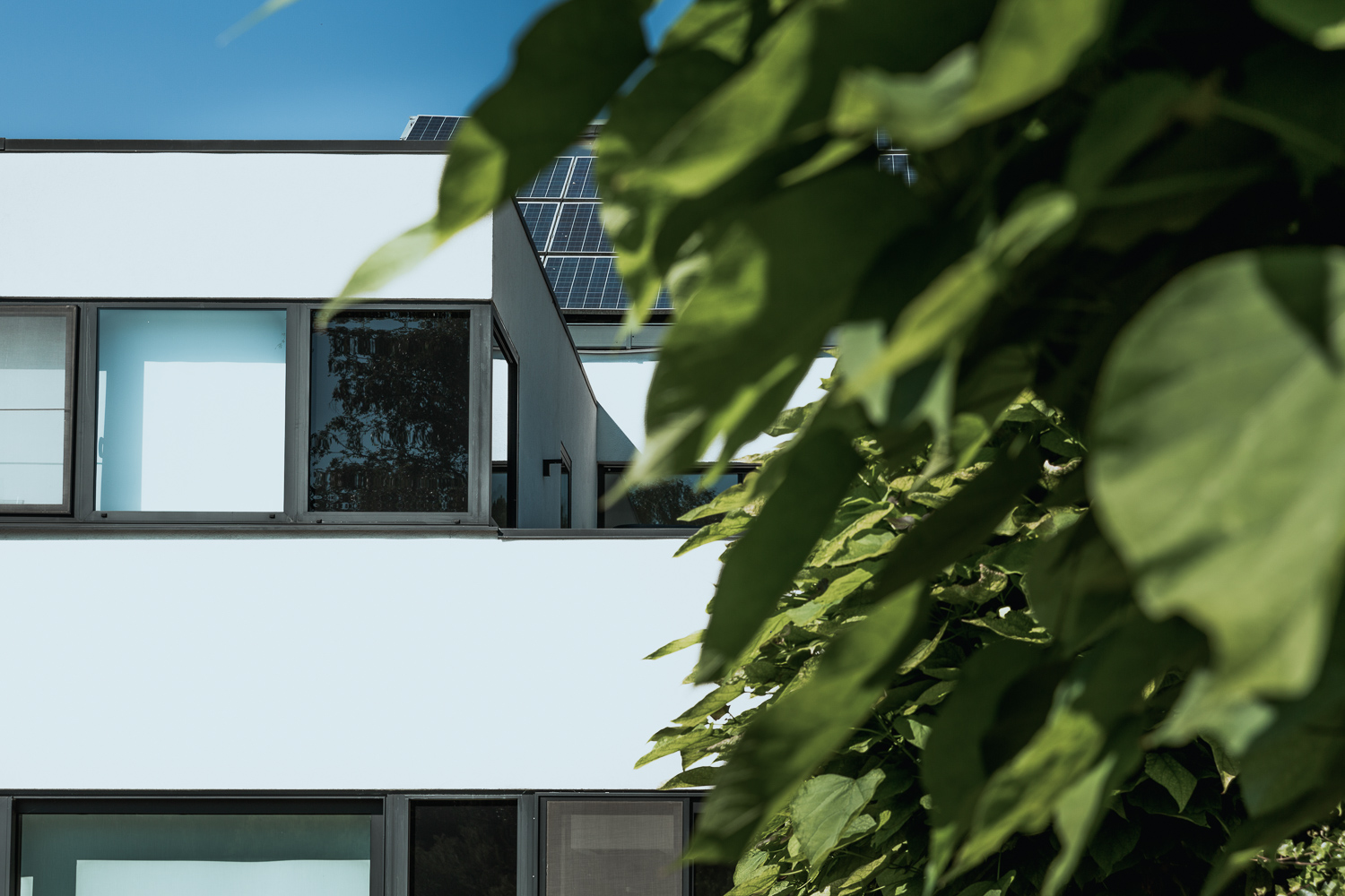 Le bâtiment existant conserve sa toiture à double pente, alors que le nouveau volume se développe en toiture plate, afin de limiter au maximum les espaces à chauffer et les déperditions.