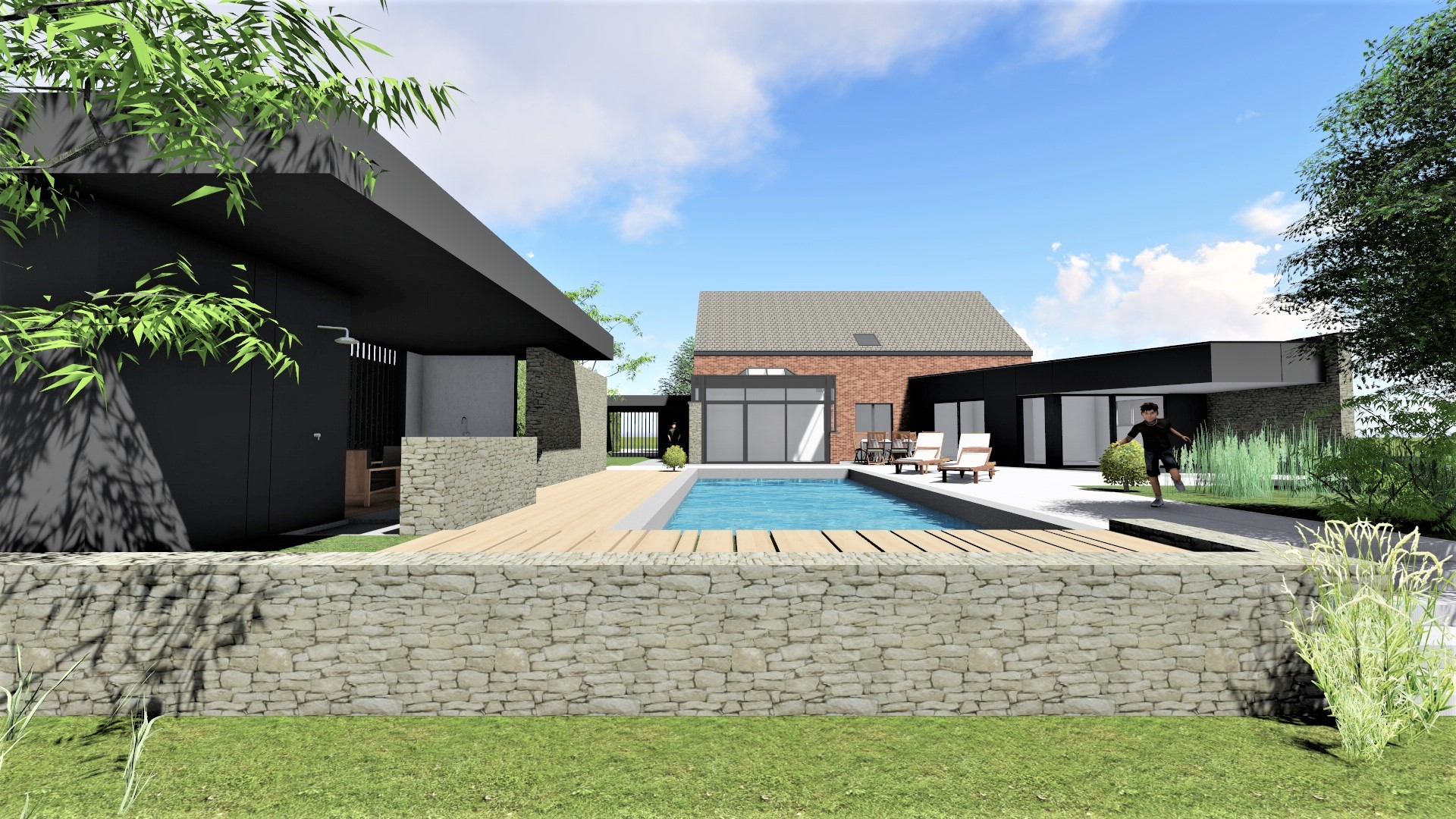 Sollicité précédemment pour la conception d’une extension de leur habitation, c’est avec le plus grand plaisir que nous avons relevé le défi des MO de concevoir cet espace poolhouse. Situé à Faimes en Hesbaye, ce projet s’inscrit donc dans la continuité d’une précédente intervention. De plus, il vient compléter un aménagement global des abords imaginé par LANDSCAPE STUDIO.
